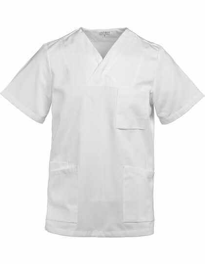 Weicher Griff | Überlappender V-Ausschnitt | Hoher Schnitt mit 1 verdecktem Druckknopf | 1 Brusttasche, Größe: ca. 11,5 x 13 cm (Breite x Höhe) | 2 aufgesetzte Seitentaschen | Seitenschlitz | Rückenlänge bei Größe S 71 cm