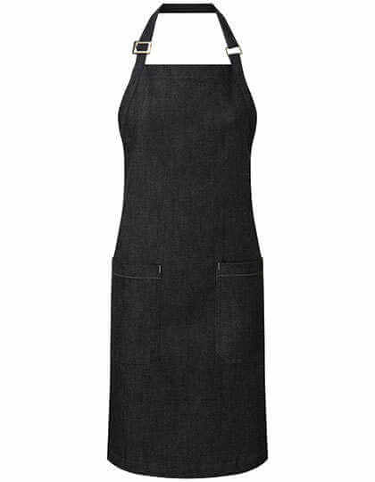 Aus recyceltem Denim-Material, Nackenknoten zur Höhenverstellung, 2 Seitentaschen, Taschengröße: 23x17, 5cm, Nähte in Kontrastfarbe, Stoffträger: 90cm lang, Länge: 86cm, Breite: 72cm, waschbar bei 60°
