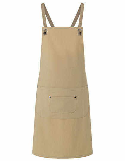 ·215 g/m² ·65% Polyester, 35% Baumwolle ·Bänder aus Schürzenstoff mit Nahtsicherung ·Latzbandlänge 70 cm, verstellbar durch Schnalle ·Aufgesetzte Tasche (40 x 20 cm) mit 2 Fächern ·Waschbar bis 60°C ·Chemische Reinigung.