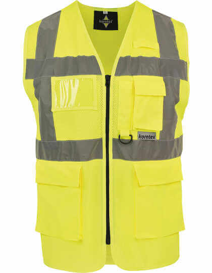 100% Polyester Mesh | Atmungsaktiv | Gelb: EN ISO 2013+A1:2016 Klasse 2, Orange: EN ISO 2013+A1:2016 Klasse 2 und RIS-3279-TOM | 50mm aufgenähtes reflektierendes Band auf dem Hauptteil | Offenes Mesh sorgt für Belüftung | Gefütterte Ränder in passender Farbe | Taschen mit Klettverschluss | Ausweistasche | Reißverschluss | Funkschlaufe | Großzügige Größe | Hersteller garantiert reflektierende Eigenschaften gemäß EN-Normen für 25 Wäschen bei 40°C.