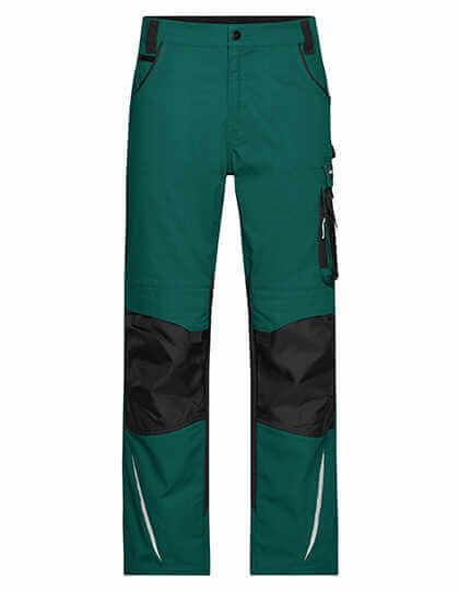 Robustes und strapazierfähiges Mischgewebe | Elastischer Bund mit Gürtelschlaufen | Taschen mit CORDURA ® Material verstärkt | Reißfeste Dreifachnaht | Seitentaschen, Werkzeugtaschen | 2 Reißverschlusstaschen | Maßbandtasche, Stifttasche, Handytasche | Waschbar bis 60°C | Trocknergeeignet | Trocknergeeignet