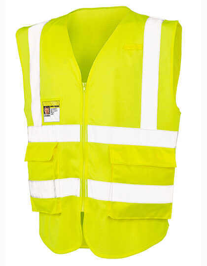 100% Polyester Mesh | Atmungsaktiv | Gelb: EN ISO 2013+A1:2016 Klasse 2, Orange: EN ISO 2013+A1:2016 Klasse 2 und RIS-3279-TOM | 50mm aufgenähtes reflektierendes Band auf dem Hauptteil | Offenes Mesh sorgt für Belüftung | Gefütterte Ränder in passender Farbe | Taschen mit Klettverschluss | Ausweistasche | Reißverschluss | Funkschlaufe | Großzügige Größe | Hersteller garantiert reflektierende Eigenschaften gemäß EN-Normen für 25 Wäschen bei 40°C.