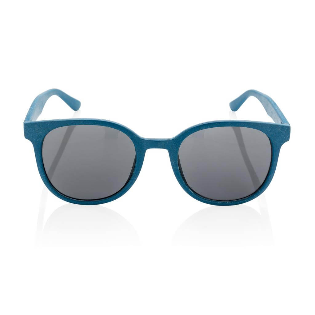 Sonnenbrille aus Weizenstroh mit UV 400-Schutz, verpackt in Kraft-Papier-Box. PMS color 1: Black 6 PMS color 1: blue PMS color 1: 7490