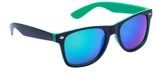 Stilvolle zweifarbige Kunststoffsonnenbrille mit Spiegelgläsern, UV 400-Schutzfilter, Kategorie 3. Tampondruckverfahren.