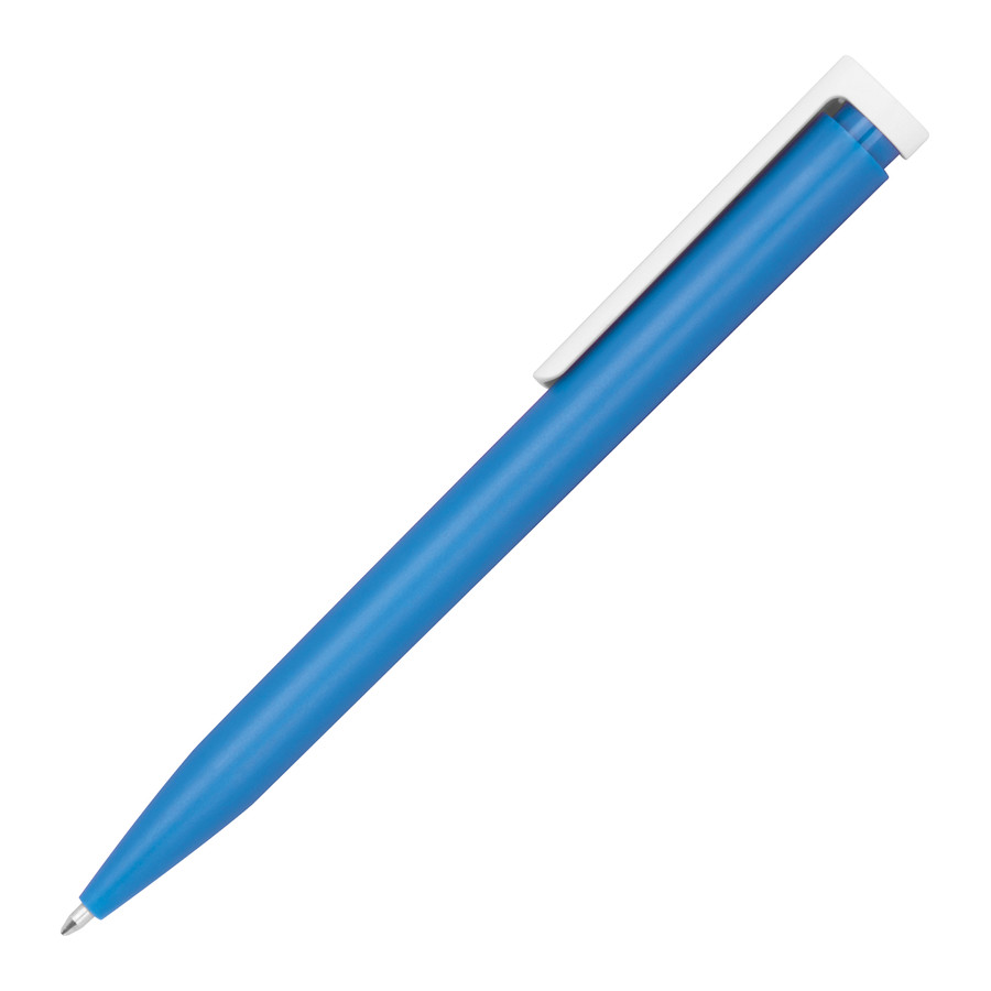 Kugelschreiber aus Kunststoff mit blauer Mine und außergewöhnlichem Clip.