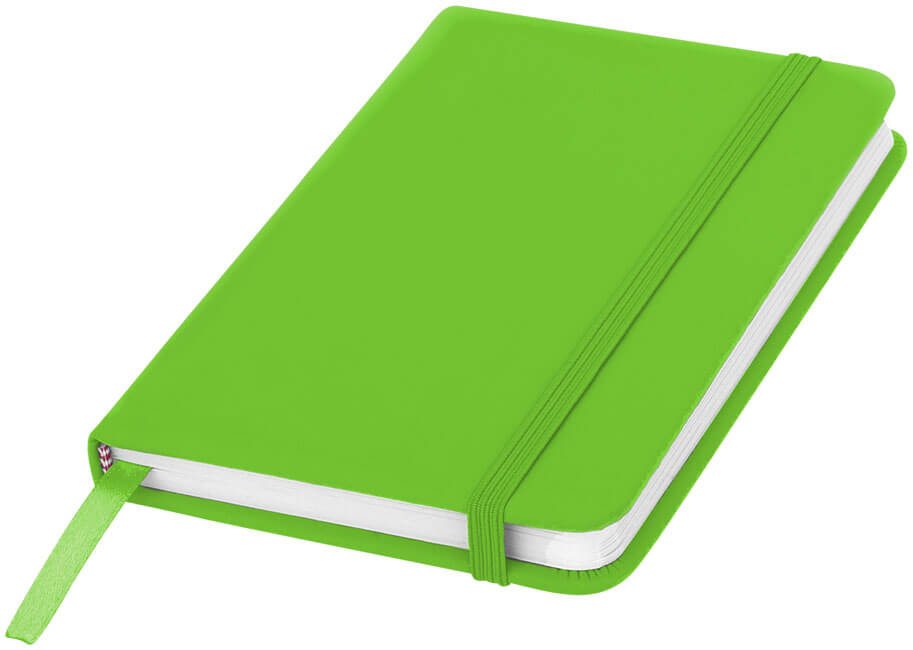 Spectrum A6 Notizbuch. Dieses Notizbuch im DIN A6-Format hat einen farblich abgestimmten Gummibandverschluss und ein passendes Lesebändchen. Es enthält 96 linierte Blätter à 60g/m2. PVC beschichteter Karton.