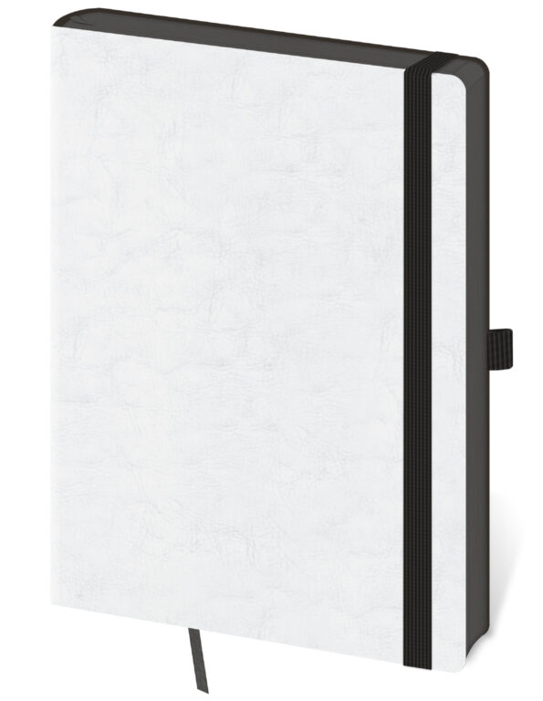 Indistinguishable from real leather, additionally completed with an elastic band across the back and a block trim in the same color. Other accessories are a paper pocket on the inside of the back covers and a pencil loop.