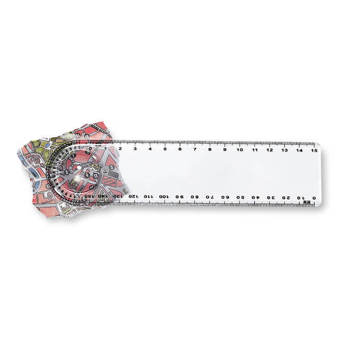15 cm Lineal mit Lupe und Winkelmesser. Kunststoff.
