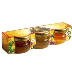 Sada 3 medov v kartoniku s potlačou