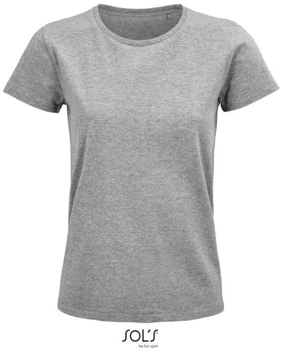 Eng anliegendes, kurzärmeliges Damen-T-Shirt aus zertifizierter Bio-Baumwolle | Rundhalsausschnitt aus 1x1-Rippstrick | Verstärkte, verdeckte Naht im Kragen | Seitennähte | Abreißbares Etikett, 100% Baumwolle (Heather Grey: 85% Baumwolle / 15% Viskose).
