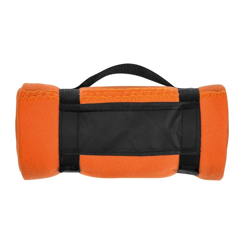 Polar fleece (170-180 gr/m2) blanket with a nylon carry strap. Unfolded size 160 x 125 cm.