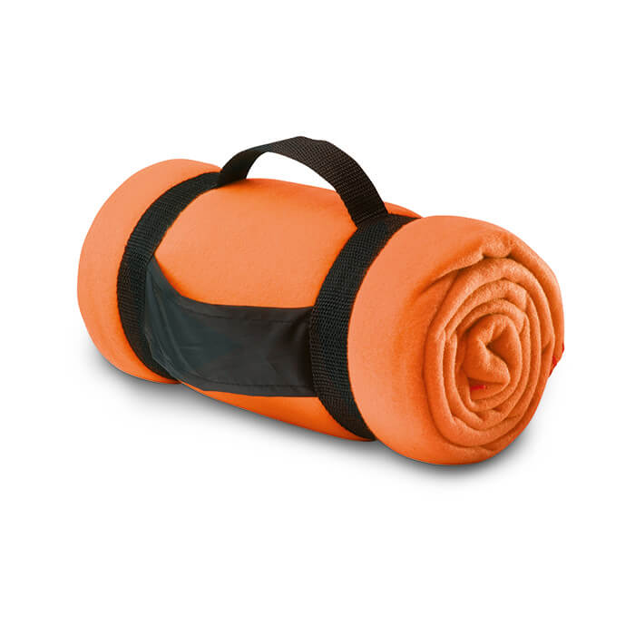 Polar fleece (170-180 gr/m2) blanket with a nylon carry strap. Unfolded size 160 x 125 cm.