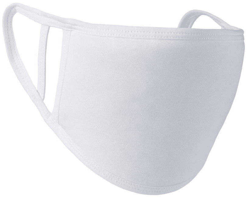 Polyester-Gesichtsmaske, 2 Schichten auf Bestellung. Das Tuch kann durch Vollfarbsublimation überall unterdrückt werden. Mit weißer oder schwarzer elastischer Kante und Ohrhaken.
