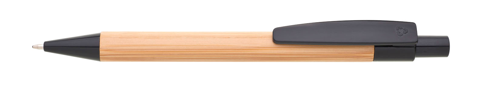 Dieser Kugelschreiber aus Bambus bietet ein elegantes und nachhaltiges Schreiberlebnis. Tintenfarbe: Schwarz. Schreiblänge: 1000 Meter. Schreibspitze: 1 mm. FSC-zertifizierter Bambus , Metall. FSC 100% N5 CU-COC-877277.