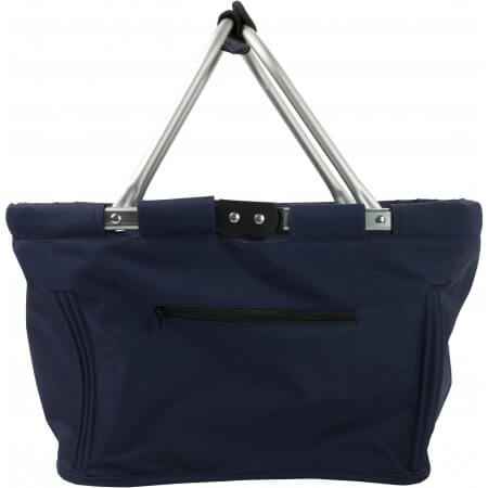 Foldable polyester (600D) shopping bag with zipped side pocket and aluminium frame.