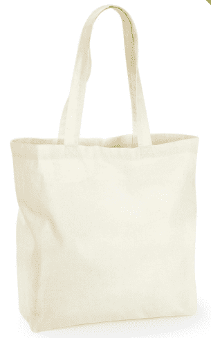 170 g/m², 100% Baumwolle (recycelt), kann in der Hand oder über der Schulter getragen werden, Fassungsvermögen: 18 Liter, Maße: 35x39x13,5 cm