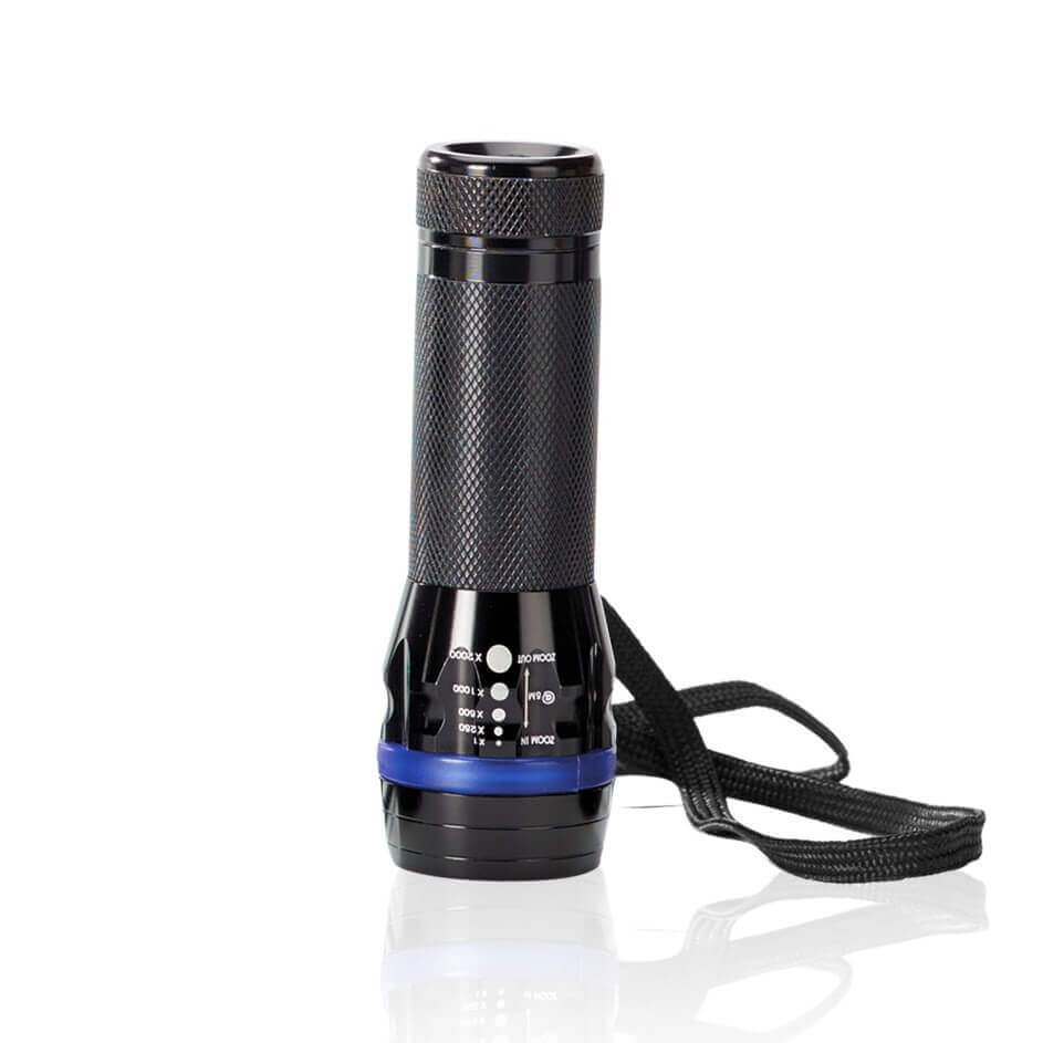 Sehr helle und praktische Aluminium Taschenlampe mit 9 LEDs. Verpackt in einer Blackbox mit 3 Batterien. Wir empfehlen die Lasergravur.