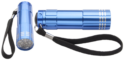 Taschenlampe aus Aluminium mit 9 LED's und Handschlaufe; Lieferung mit 3 AAA Batterien.