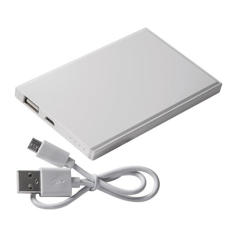 Dank ihrer schlanken Form ist die Power Bank aus Kunststoff mit einer Kapazität von 2200 mAh überall leicht dabei. Im Lieferumfang ist ein Micro-USB-Kabel enthalten.