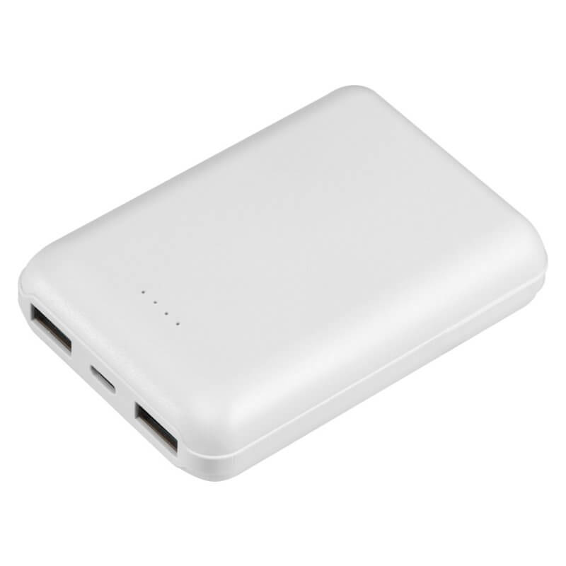 Power Bank mit 20.000 mAh, digitaler Ladeanzeige und Ladekabel. Über zwei USB-Anschlüsse können problemlos bis zu 2 Geräte gleichzeitig aufgeladen werden.