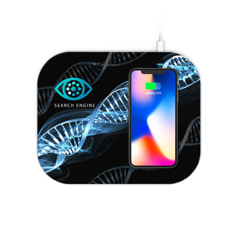 Mit dem stylischen Multifunktions-Mauspad können Sie Ihr Mobiltelefon und jedes andere induktive Gerät kabellos aufladen. Alles, was Sie tun müssen, ist, das Gerät hinzulegen und aufzuladen. Für Geräte ohne kabelloses Aufladen kann ein externer Qi-Signalempfänger erworben werden. Unser neues Pad aus PU und Kunststoff mit einer angenehmen Oberflächenbehandlung aus Kunstleder, passt perfekt zu jedem Schreibtisch. Dank dem vollflächigen CMYK-Farbdruck entsteht ein wirklich einzigartiges Mauspad und ein kabelloses Ladegerät für Mobiltelefone in einem.