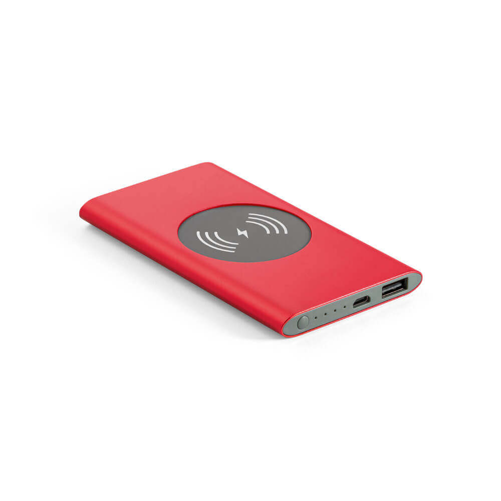 Powerbank mit wireless Ladefunktion aus Recyceltes Aluminium (100 % rAL). Tragbarer Akku mit 4'000 mAh Kapazität, Ladestandsanzeige, einem USB-C-Eingang, einem USB-A-Ausgang und 5 W kabelloser Ladeleistung. Kompatibel mit mobilen Geräten mit kabelloser Ladetechnologie. Enthält ein USB-C-Ladekabel. Wird in einer Geschenkbox geliefert. 123 x 70 x 10 mm