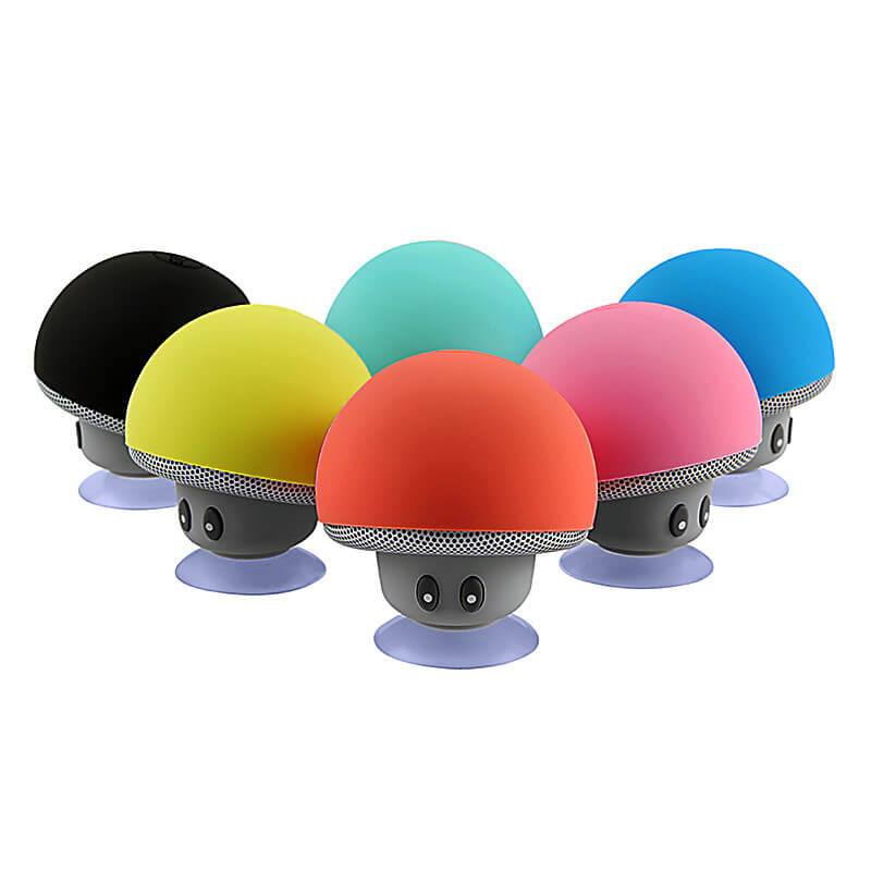 Der kleine und handliche, kabellose Lautsprecher in Form eines Pilzes mit Saugnapf findet seinen Platz auf jedem Tisch und haftet auch an der Rückseite eines Handys. Die kabellose Wiedergabe verläuft über Bluetooth 2.1 mit einer Reichweite von bis zu 10 Metern. Sie können entweder über den Lautsprecher Musik hören oder Kopfhörer an einen 3,5 mm Jackstecker anschließen. Die Akkukapazität des Lautsprechers beträgt 150 mAh. Sobald dieser leer ist laden Sie ihn einfach über Micro-USB auf. Das originelle Design kommt in allen erhältlichen Farben zur Geltung und kann außerdem mit Ihrem eigenen Motiv bedruckt werden.