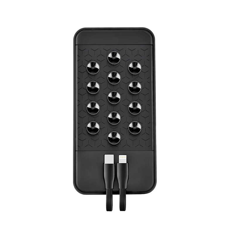 Die kabellose Powerbank mit integrierten Kabeln und Saugnäpfen verfügt über eine kabellose Technologie und einen 8000-mAh-Akku, der dafür sorgt, dass Ihre Geräte sofort und ohne Kabel aufgeladen werden. Sie können mit dem Aufladen Ihrer Geräte beginnen, indem Sie sie einfach auf die Powerbank stellen. Sie kann verschiedene Arten von Smartphones aufladen. Inklusive integriertem Typ-C- und Lightning- (iPhone) Stromkabel. Saugnäpfe befestigen das geladene Gerät und den externen Akku einfach und fest aneinander. Die schwarze Version der Powerbank kann mit einem schicken weißen LED-Logo und die weiße Version mit einem bunten Aufdruck ergänzt werden. Beide Versionen haben ihren ganz eigenen Charme.