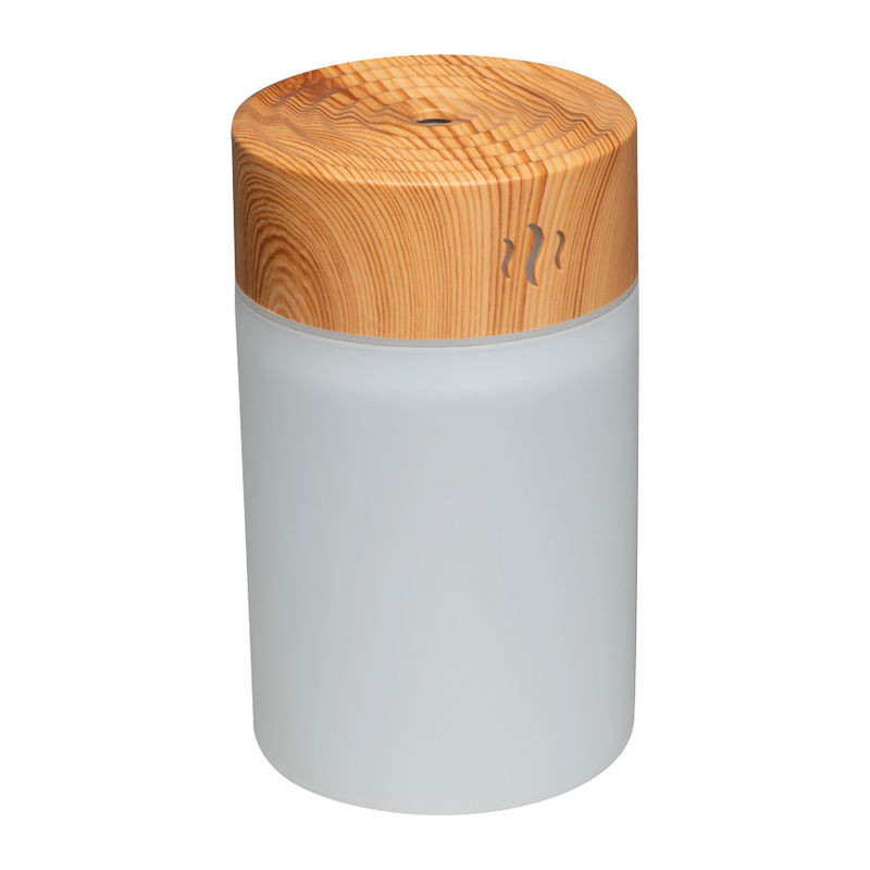 Luftbefeuchter mit farbwechselndem LED-Licht und einem Volumen von 255 ml. USB-Ladekabel im Lieferumfang enthalten.
