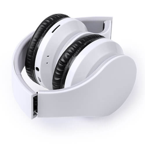 Zusammenklappbarer Kopfhörer aus Kunststoff, Akku. Mit Handsfree- und Micro-SD-MP3-Funktion. Inkl. 3,5mm Audio Stecker und USB Ladekabel.