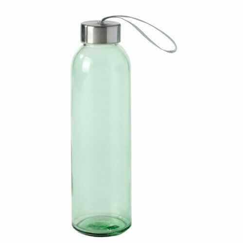 Trendige Trinkflasche aus Glas mit einem Volumen von 500 ml, in verschiedenen Farben, mit Edelstahldeckel.