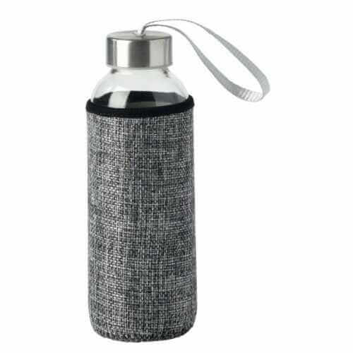 Sklenená fľaša na pitie s neoprénovým puzdrom, vrchnák z nehrdzavejúcej ocele s bambusovým vrchom, ucho na prenášanie a objem 600 ml.