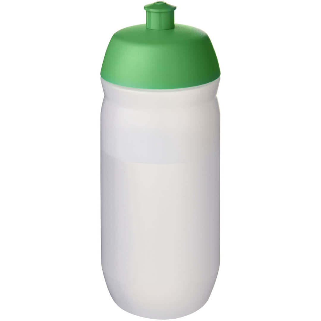 Einwandige Sportflasche mit aufschraubbarem, herausziehbarem Deckel. Diese Schrumpfflasche aus flexiblem MDPE-Kunststoff ist ideal für Sportumgebungen. Das Volumen beträgt 500 ml. Hergestellt in Großbritannien.