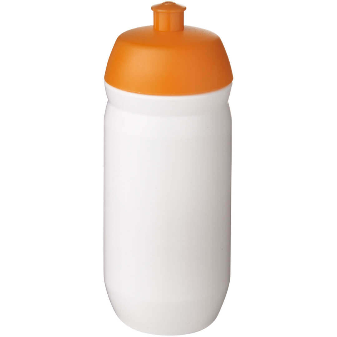 Einwandige Sportflasche mit aufschraubbarem, herausziehbarem Deckel. Diese Schrumpfflasche aus flexiblem MDPE-Kunststoff ist ideal für Sportumgebungen. Das Volumen beträgt 500 ml. Hergestellt in Großbritannien.