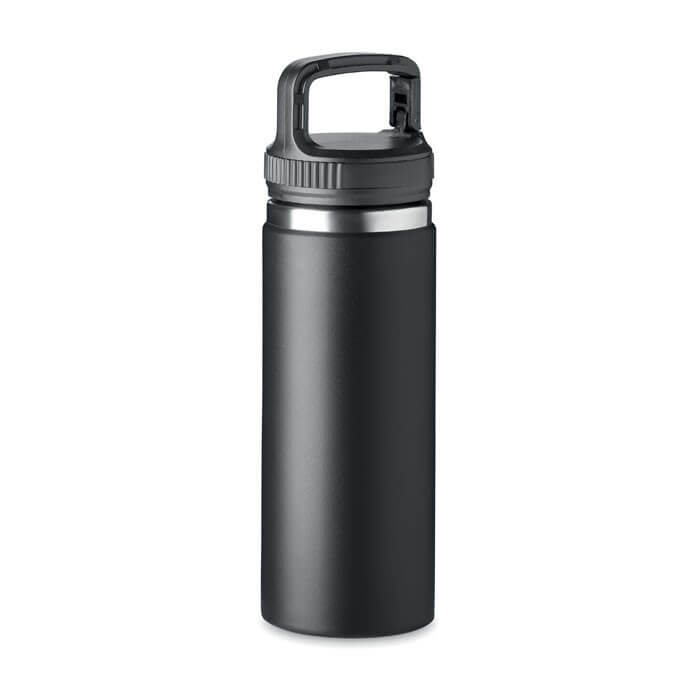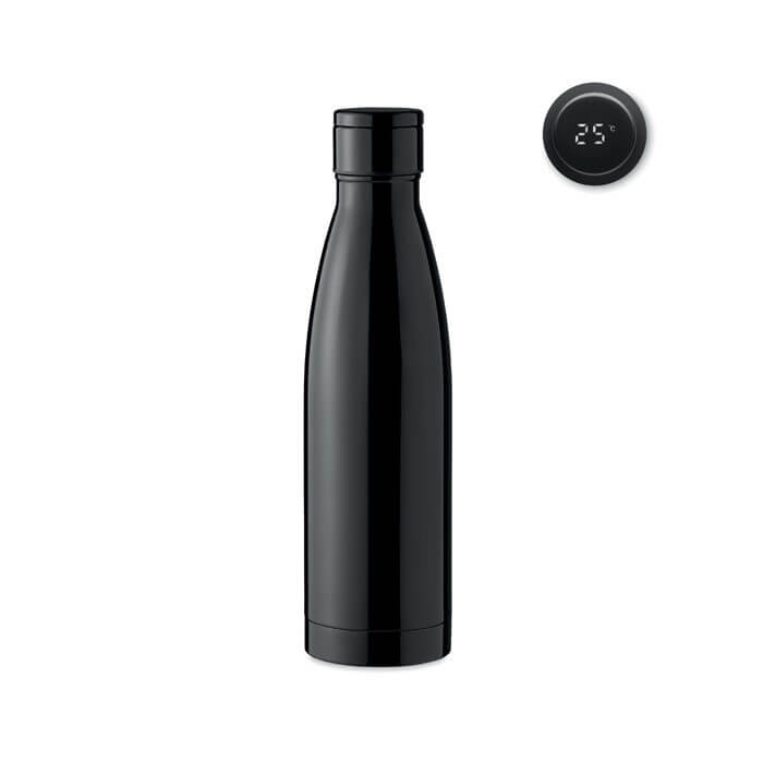 Praktische und stilvolle Wasserflasche mit einer soliden Doppelwand. Vakuumversiegelt, um Getränke bis zu 6 Stunden lang heiß oder kalt zu halten. Genießen Sie Ihr Lieblingskaltgetränk auf Reisen oder nehmen Sie morgens auf dem Weg zur Arbeit eine wärmende Tasse Tee oder Kaffee mit. Knopfdruck-Funktion. 500 ml.