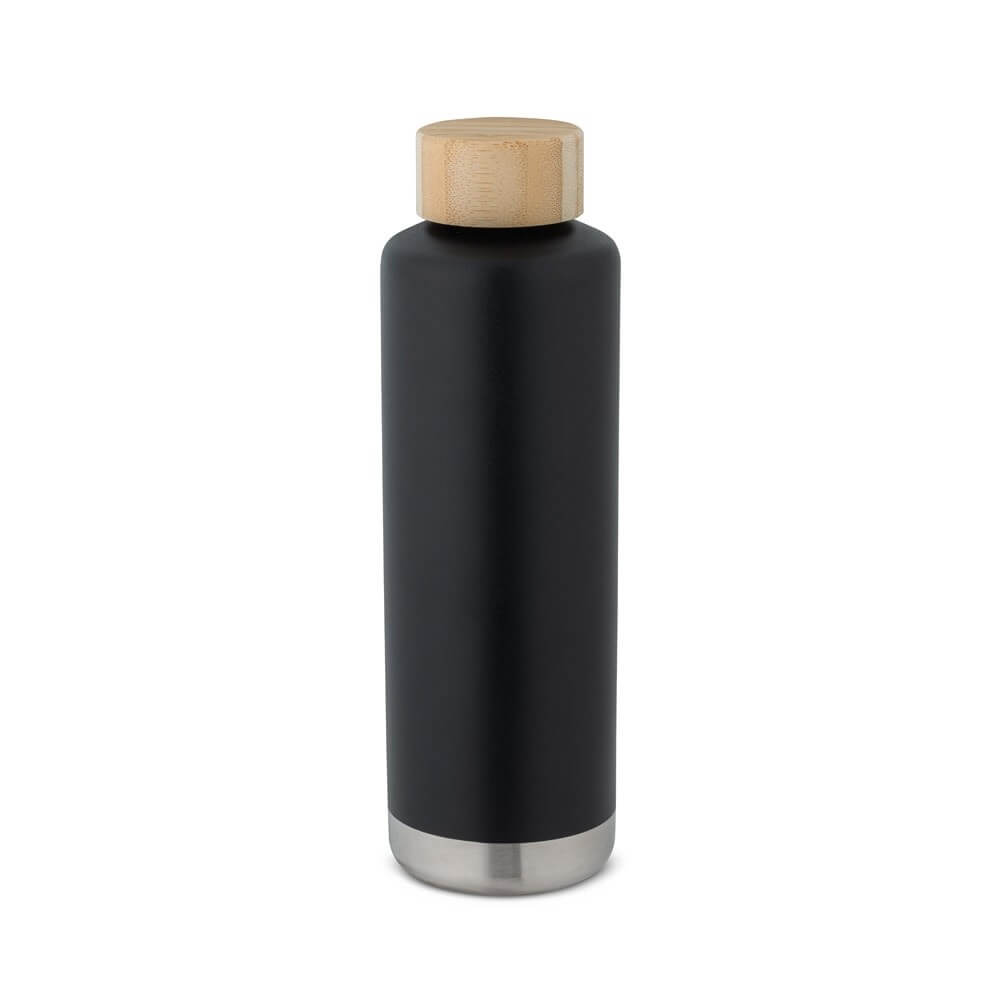 Doppelwandige Flasche aus (90 % recyceltem) Edelstahl und PP-Verschluss. Der Deckel verfügt über eine Schraube und einen Griff zum einfachen Transport. Fassungsvermögen bis zu 570 ml. Lieferung in einer Geschenkbox aus Kraftpapier. ø73 x 227 mm