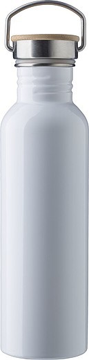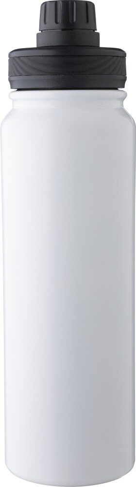 Stainless steel single-walled drinking bottle (650 ml) with PS lid and silicone strap. Bottle made from stainless steel 304. Individually packaged in a brown cardboard box. Dimensions: 6,7 x 22,5 cm