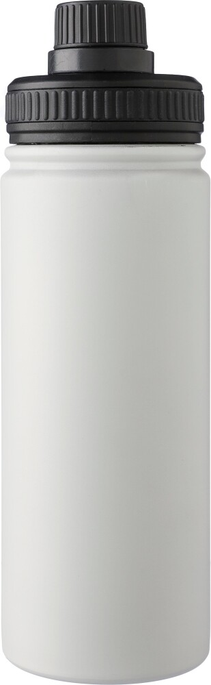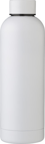 Stainless steel double-walled drinking bottle (500 ml) with PP lid, PP screw spout, and carrying handle. The interior is made of stainless steel 304 , and the exterior is stainless steel 201. Individually packaged in a brown cardboard box. Dimensions: 7,8 x 26,9 cm