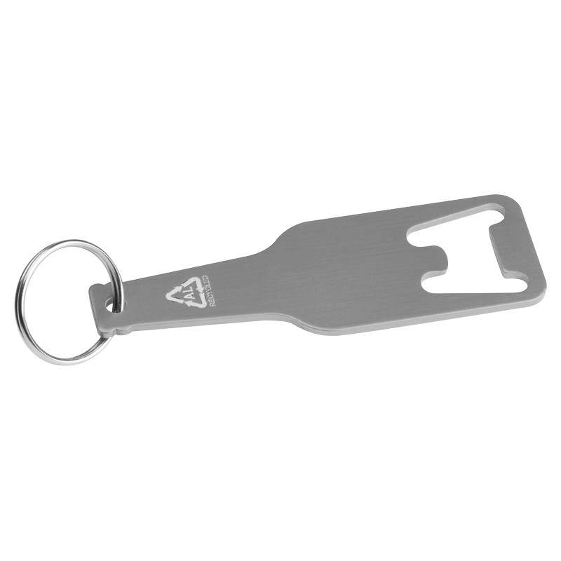 Flaschenöffner aus recyceltem Aluminium mit Schlüsselring.