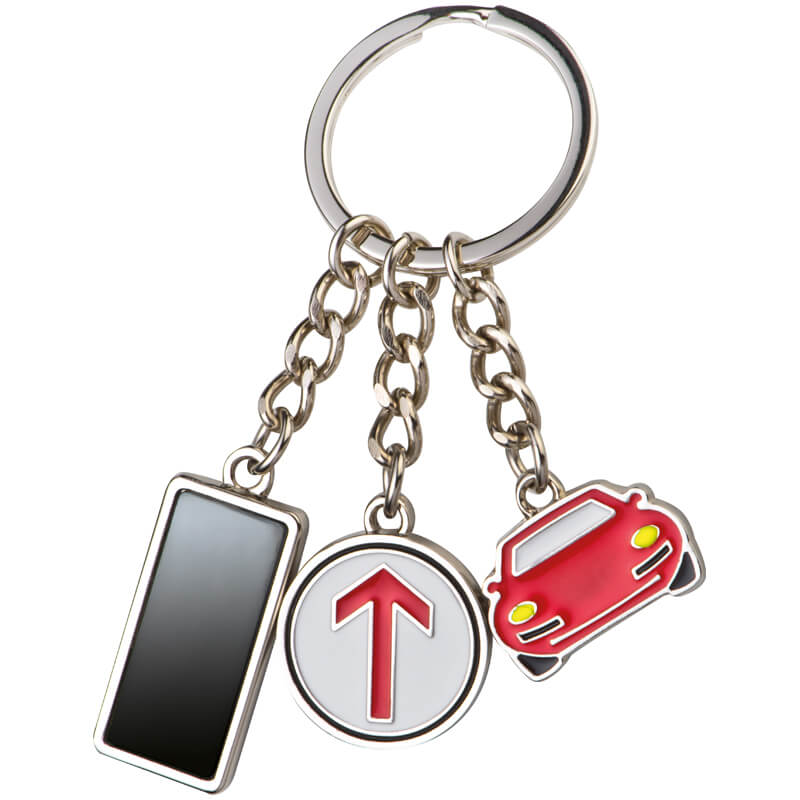 Metall-Schlüsselanhänger mit 3 Anhängern.