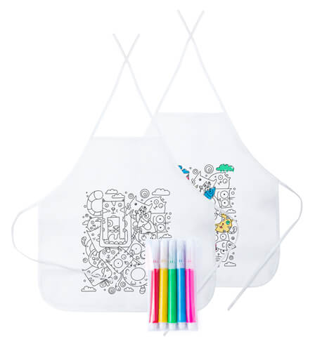 Schürze für Kinder aus Non-Woven mit 5 Filzstiften zum Ausmalen.