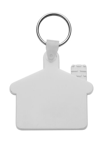 Schlüsselanhänger aus Kunststoff in Form eines Hauses, mit Metallring.