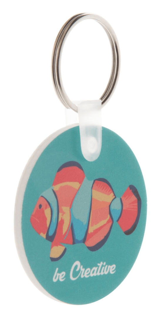 Schlüsselanhänger aus Acryl mit Metallring mit vollflächigem Druck. Produktion in eigener Form. Maximale Größe: 45x45 mm. Preis inkl. UV LED Digitaldruck. Mindestbestellmenge: 250 Stk.
