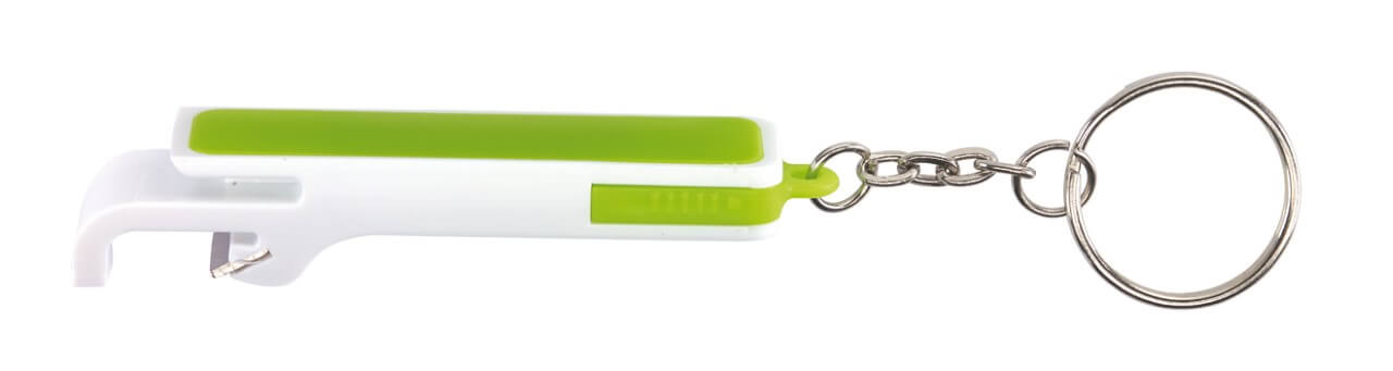 Schlüsselanhänger "Double Open" : mit ausziehbarem Halter für ein Smartphone, integriertem Flaschenöffner und Schlüsselring