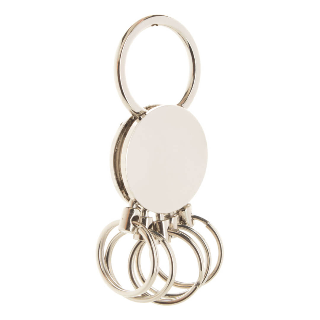 Runder Schlüsselanhänger aus Metall mit 5 Metallringen. Lieferung in schwarzer Geschenkbox.