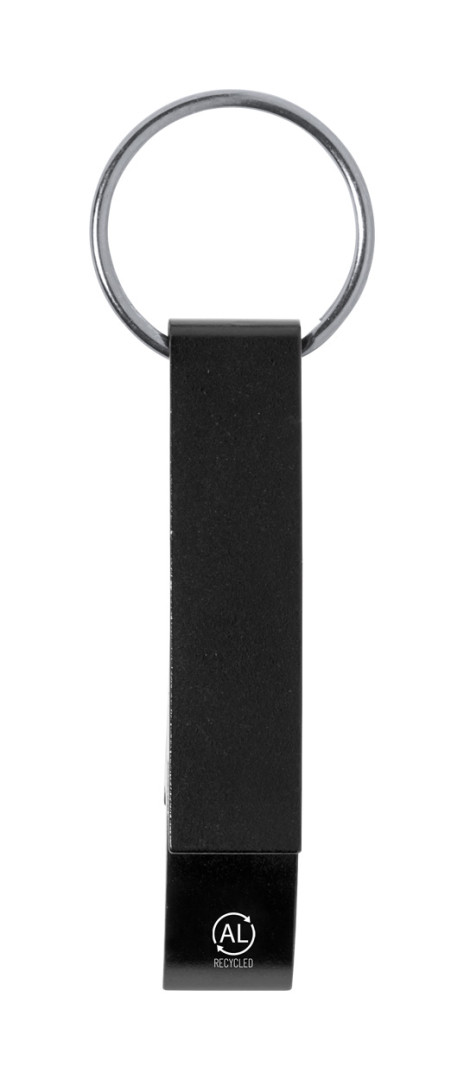 Schlüsselanhänger mit Flaschen- und Dosenöffner. Hergestellt aus recyceltem RCS-Aluminium. Die RCS-Zertifizierung garantiert den Einsatz von Recyclingmaterial durch eine transparente Übersicht über die Lieferkette. Der Gesamtanteil an recyceltem Material am Produktgewicht: 79 %. Verpackt in Papierverpackung.