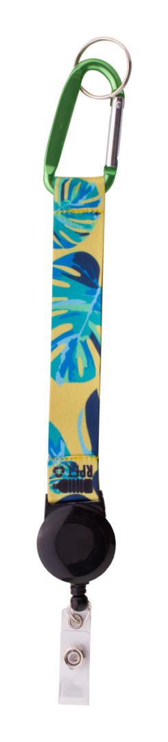 Schlüsselanhänger aus RPET-Polyester mit beidseitigem Sublimationsdruck. Mit internem RPET-Etikett, ausziehbarem Ausweishalter, Aluminiumkarabiner und Metallschlüsselring. Der Preis beinhaltet den Sublimationsdruck, nicht aber die Druckvorbereitung. Mindestmenge: 100 Stück.