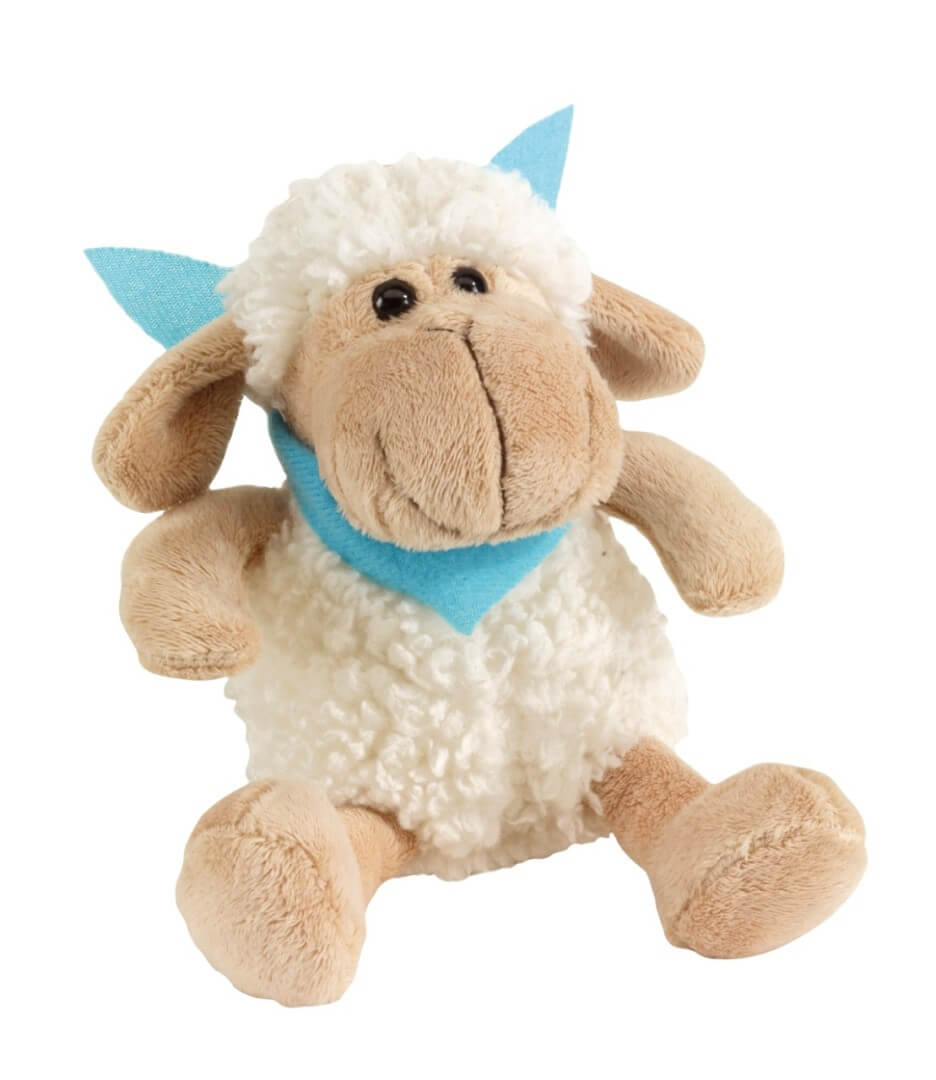 Plüsch-Schaf "Rosi" : mit weichem Fell und hellblauem Halstuch (separat gepackt), zum Bedrucken