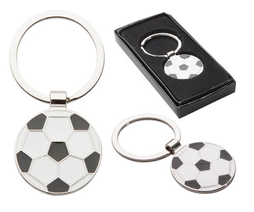 Schlüsselanhänger in Form eines Fußballs. Lieferung in schwarzer Geschenkbox.