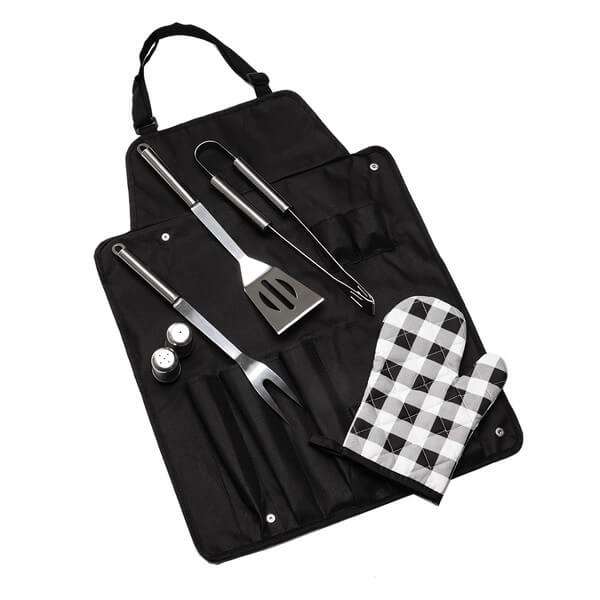 7 piece set for grilling from metal and nylon with apron.
